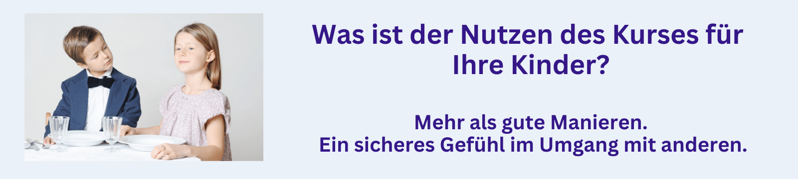 meine beiden Kinder waren sehr begeistert von Ihrem Kinder-Knigge-Privatkurs! Sie haben nicht nur viel gelernt, sondern hatten auch großen Spaß an den spielerischen Übungen und praxisnahen Inhalten.